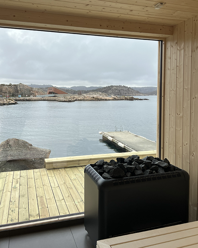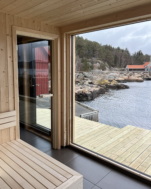 Plassert på bryggekanten rett utenfor døra vår inviterer vår nye badstue deg til å senke tempoet og komme tett på elementene.